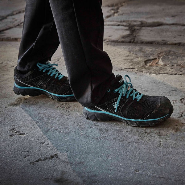 Terra women's Pacer 2.0 work shoe was designed with a breathable microfibre and micro-mesh upper. The moisture-wicking and abrasion-resistant lining will keep your feet dry, while the premium single-density EVA FOOTBED® keeps them comfortable. Reflective 3M Scotchlite™ heel and vamp accents.