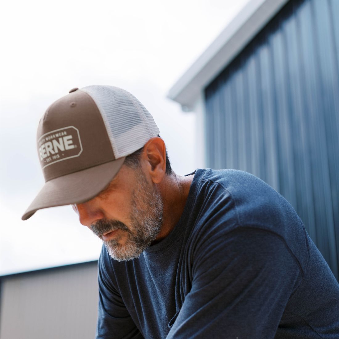 Stay cool and stylish with the Berne Logo Trucker Hat H181. Front fabric made of 100% cotton twill provides a comfortable fit, while the back fabric made of 100% polyester mesh keeps you cool. With an adjustable snap strap, this one-size-fits-most hat is perfect for any adventure. Expertly crafted for maximum comfort and style.