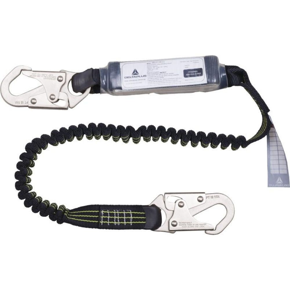 - Shock-absorbing lanyard with energy absorber elastic strap.
