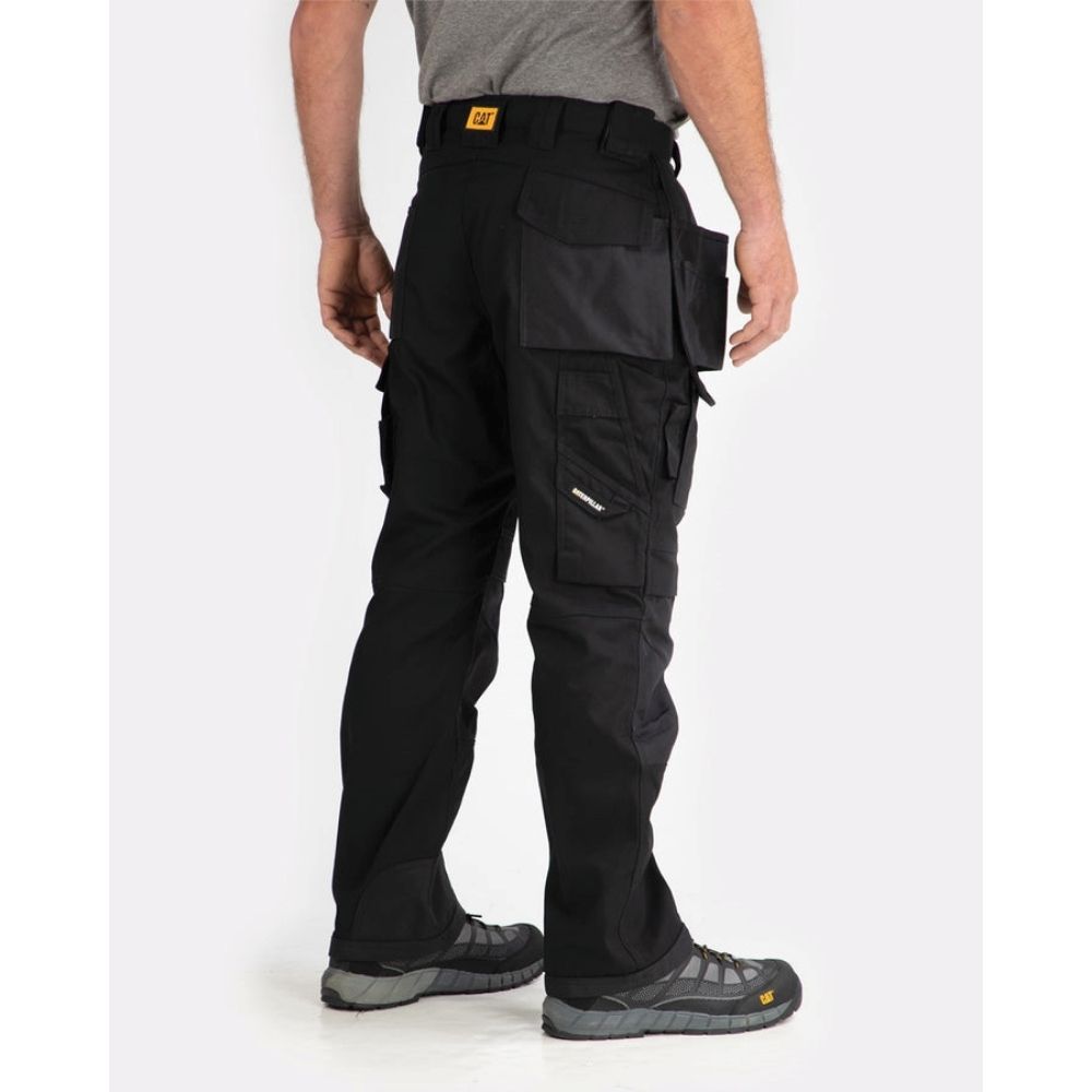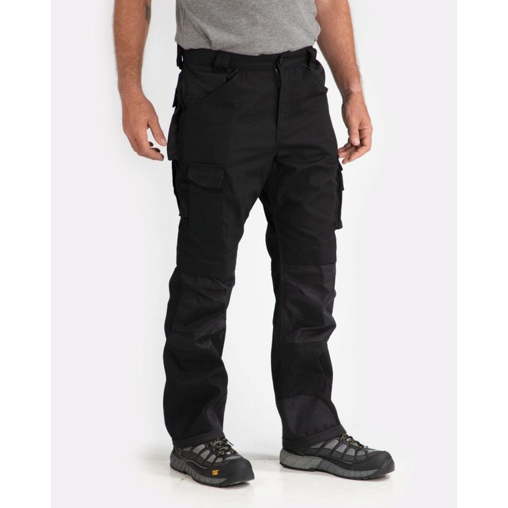 CAT Men's Trademark Work Pants are the perfect choice for hardworking men who appreciate functional style and quality. Crafted from durable Oxford fabric with long-lasting wear and tear, these rugged pants feature front holster pockets perfect for multiple tools, diamond shape crotch gussets for ease of movement, top loading knee pad pockets, secure cargo pockets, rear tool pocket, and 20 inch (51 cm) leg openings to fit over work boots.
