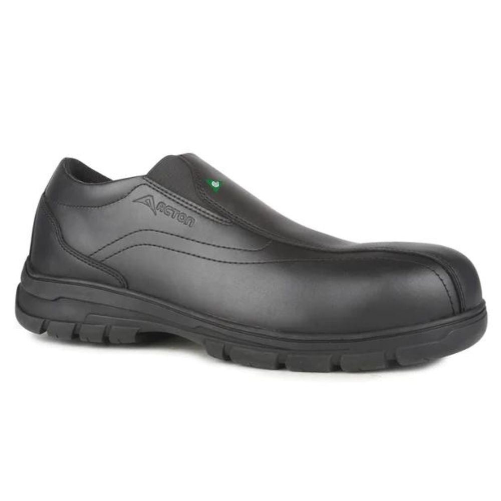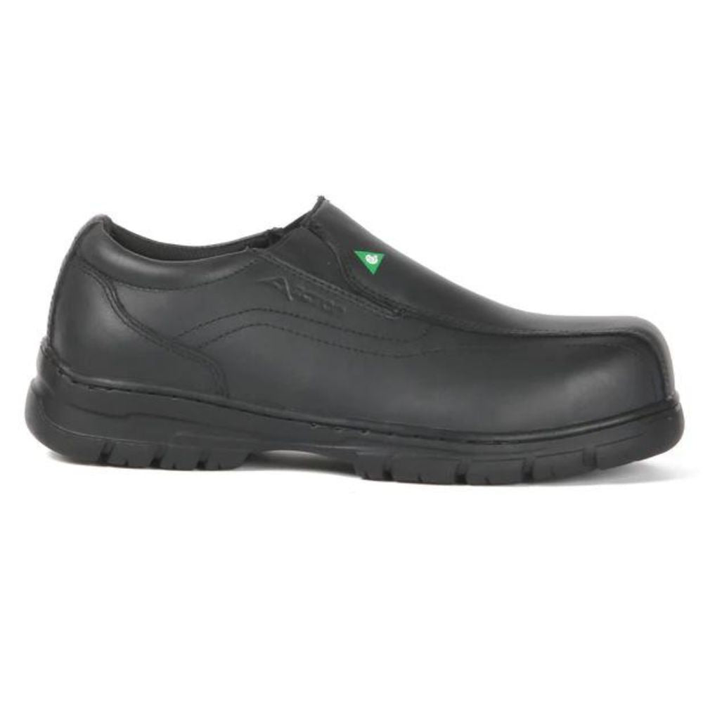 These Acton Club slip-on men's work shoes protect and support your feet while lasting longer through hard work with feature-rich construction. The full grain leather upper and breathable mesh lining with antimicrobial treatment keeps your feet cool and dry. The lace system features corrosion resistant metal eyelets and the rubber outsole provides oil and slip resistance, while the extra wide fit ensures a comfortable and secure fit. The removable insole is made of PU foam for long-lasting cushioning and comfort.