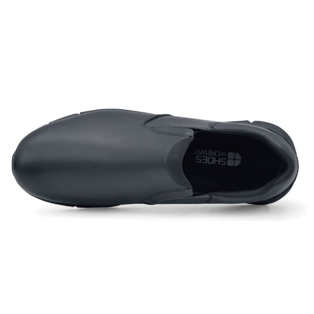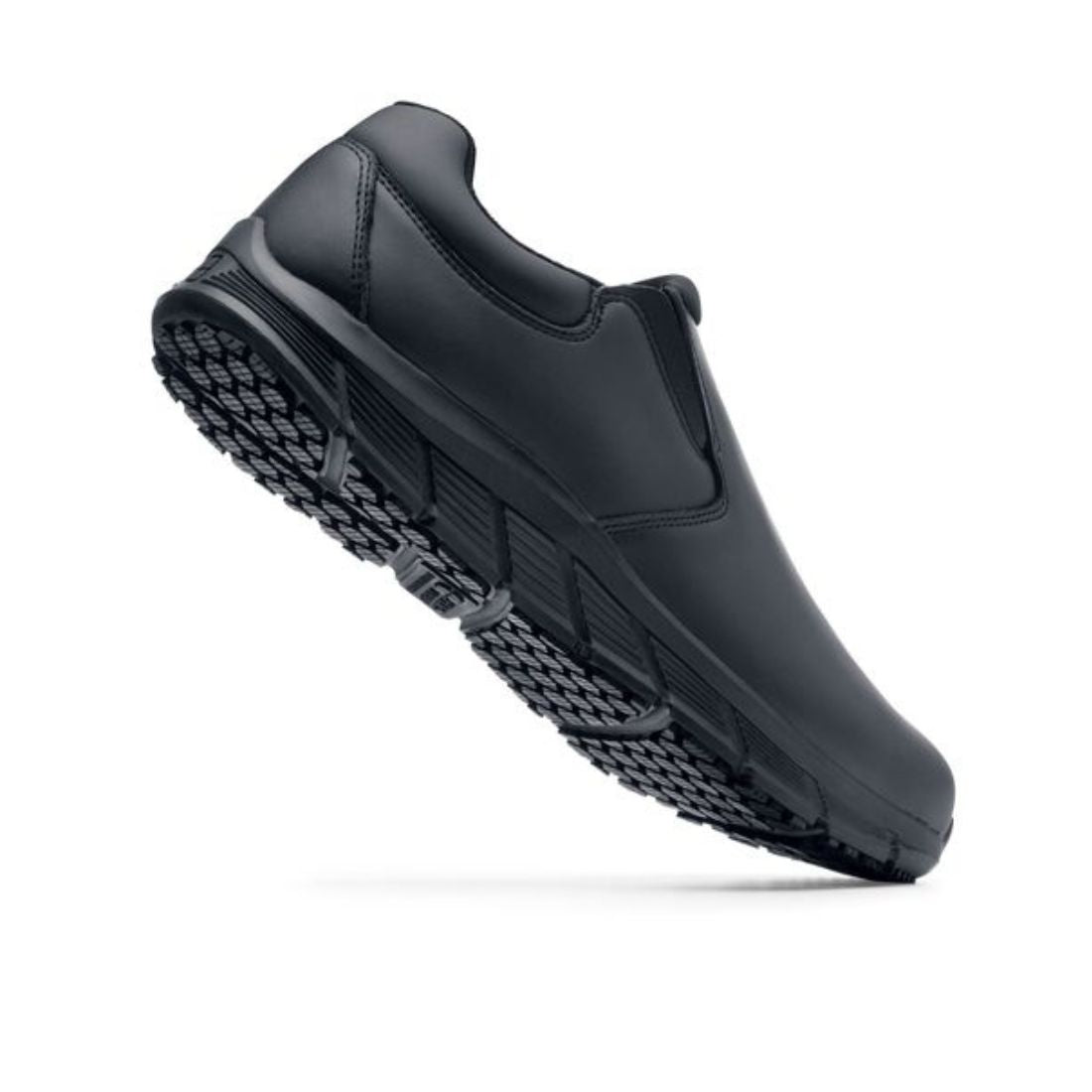 The Shoes For Crews Cater II slip-on shoe is designed for comfort and safety. With its patented slip-resistant outsole and easy clean feature, you can confidently navigate any surface. The water-resistant treatment keeps you dry, while the natural fit allows for maximum comfort. The TRIPGUARD®, FLEX TREAD®, and ZONE TRACTION® features work together to provide superior performance on any terrain.