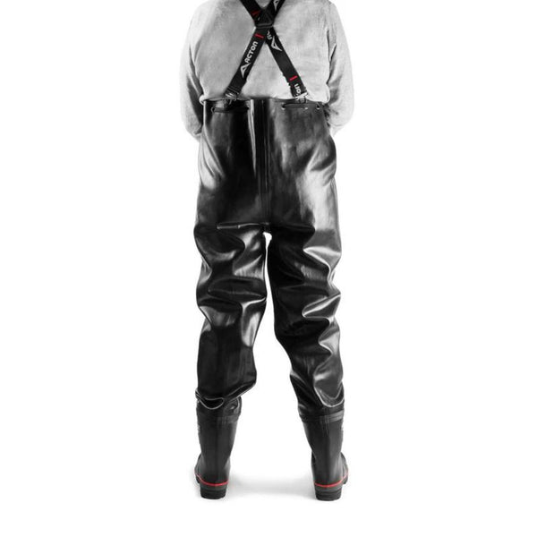 Introducing Protecto 2.0 Waterproof Natural Rubber Chest Wader Work Boots, the ultimate work boots for outdoor professionals. These 51”/130 cm boots are made with waterproof natural rubber to resist manure, oil, and chemicals. The neoprene lining, steel toe protector, and puncture-resistant plate provide insulation, stability, and comfort. Complete with adjustable suspenders, an inside pocket, and a removable insole, these boots are a must-have for working in water.