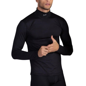The winter gear go-to! Watsons Men's mockneck performance top features a 4-way spandex stretch with maximum comfort, ease of movement, and an anti-microbial treatment that controls the growth of bacteria that causes odor. Designed with an engineered mock neck, longer back, and brushed interior fabric to wick moisture away to stay dry comfortable, and warmth. Great for layering.