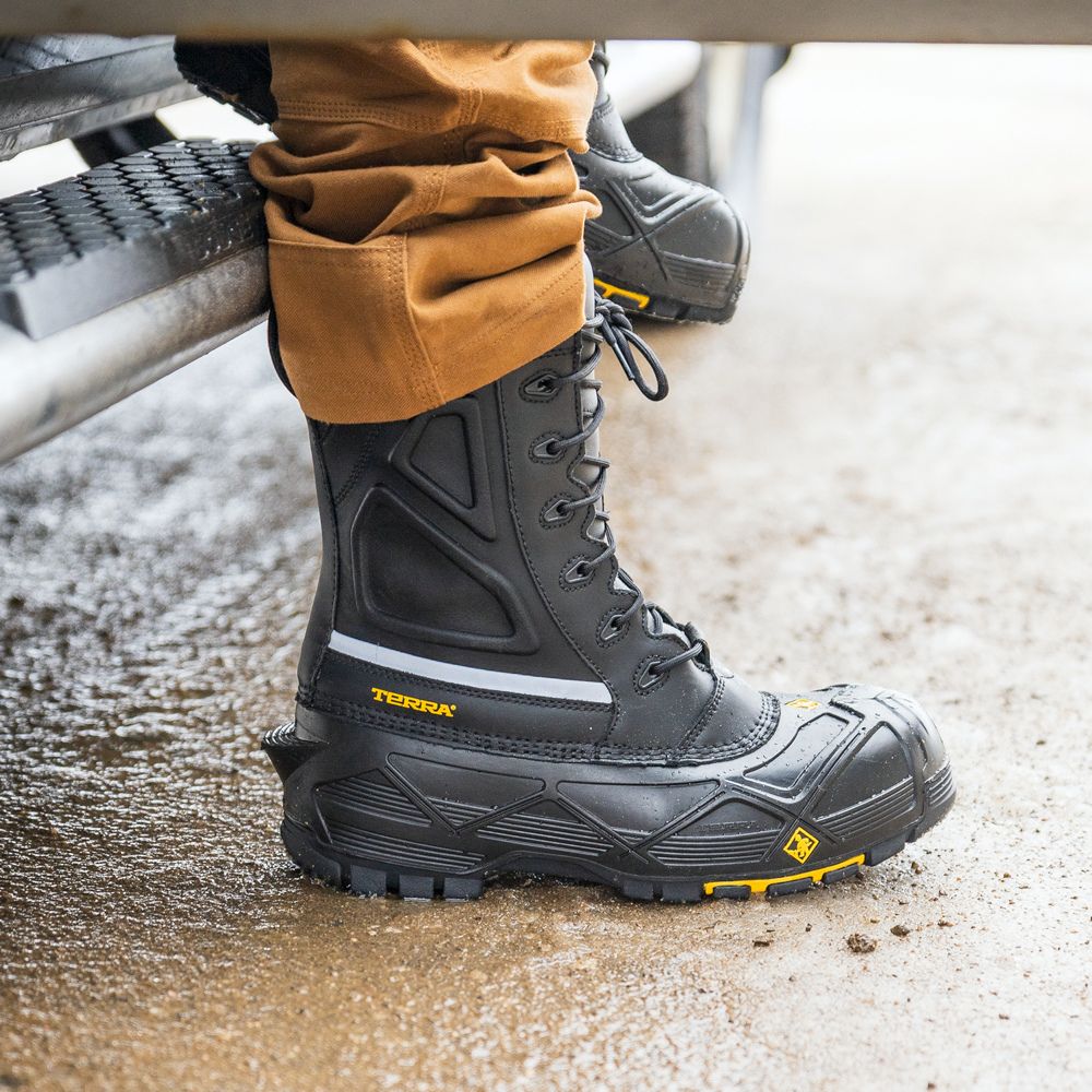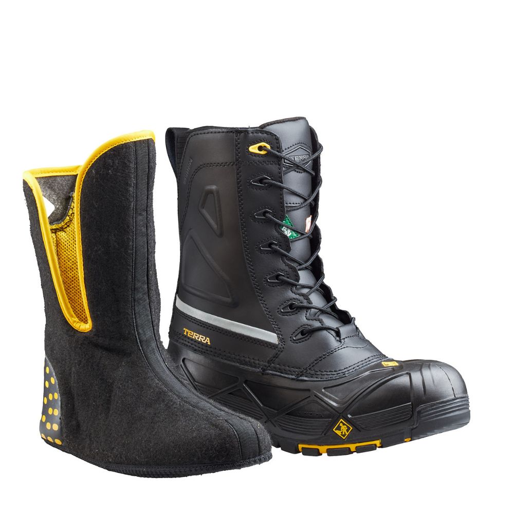 With the Terra Crossbow Waterproof Winter Safety Boot, you can conquer winter terrain with confidence. Featuring a full grain waterproof sealed-seam leather upper accompanied by an integrated rear pull tab for easy on and off, you'll be able to take on any job no matter how cold it may be - because this boot is resistant up to -60°C/-76°F! The TERRASPHERE™ 4-layer lining system allows your feet to remain dry and comfortable while the CLEANFEET® odour-control treatment keeps unpleasant smells away.