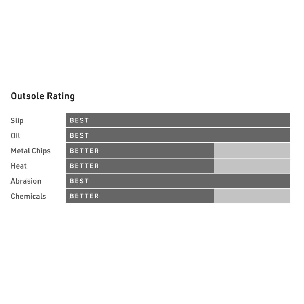 Alloy toe reduces weight while maintaining impact protection (meets or exceeds ASTM F2413.