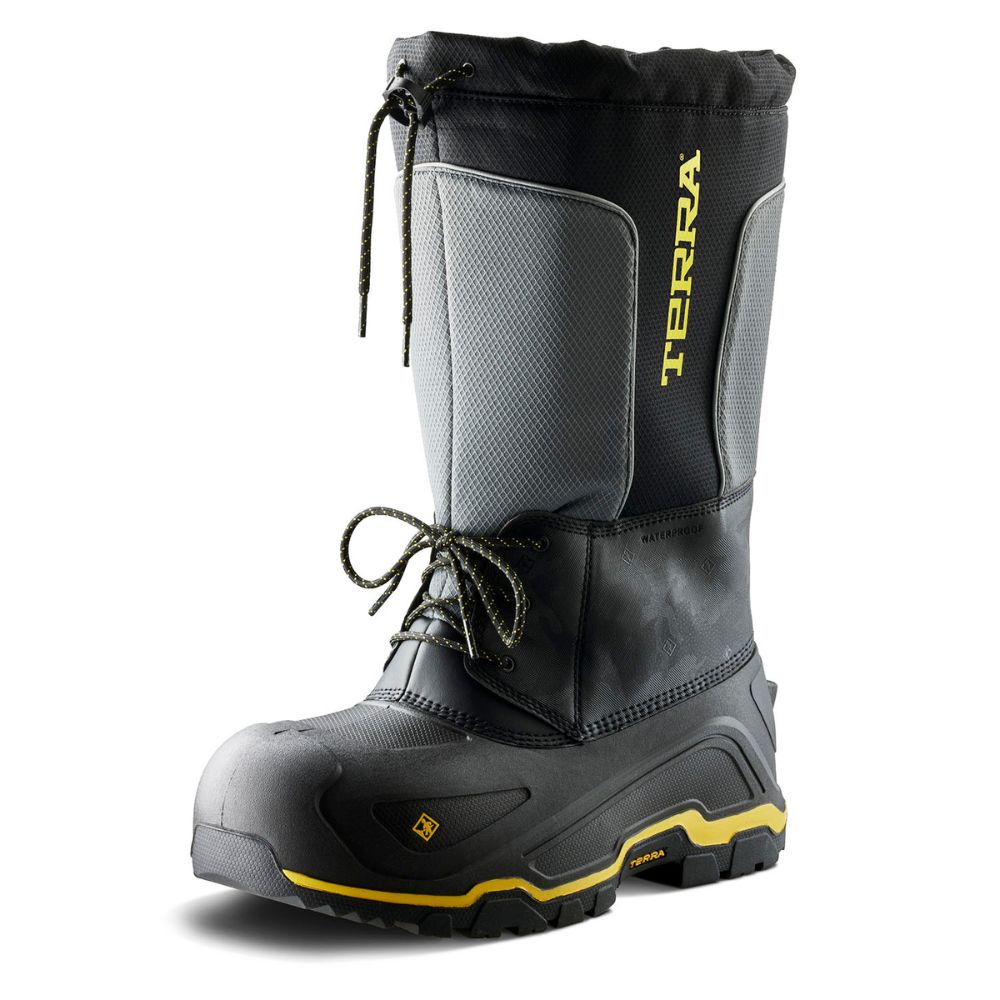 The Terra Stormbreaker Unisex Waterproof Winter Safety Boot with Composite Toe is an extreme cold-resistant boot designed to keep you safe and warm in temperatures as low as -76°F. It features a DWR treated 50% recycled PET upper with a removable 8-Layer TERRASPHERE+ lining system, 3M™ Scotchlite™ reflective detailing and a thermal-tested, high-traction rubber outsole. The boot also boasts a direct-injected PU shell bottom, a two-layer spacer mesh and EVA moisture-wicking frost plug insole, and CSA Grade 1 composite toe, composite plate, and E.S.R. protection. Stay safe and warm this winter in the Terra Stormbreaker Boot!