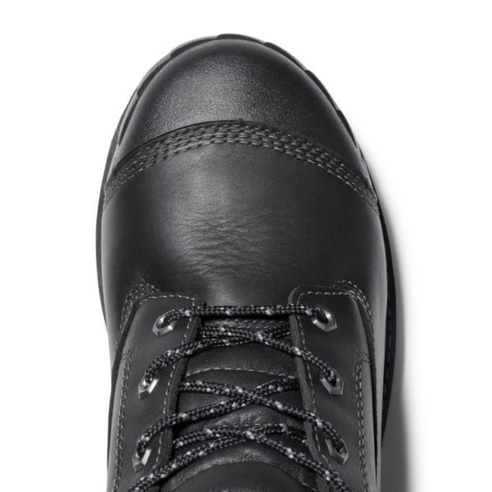 Timberland PRO's Boondock Men's 8-inch composite toe work boot was designed to last with a premium waterproof upper, non-metallic puncture plate, and a slip-resistant sole. Unique finger grip pull-on feature for ease of entry. Combination of three-quarter Goodyear® welt/cement heel construction.