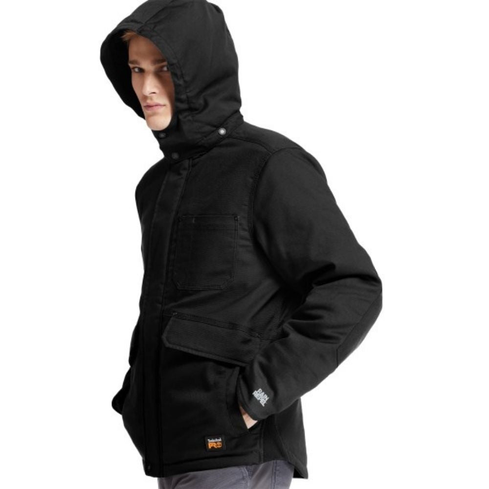 With zoned insulation to help keep you warm where you need it, the Timberland PRO® Ironhide hooded jacket also features RainRepel™ water-resistant technology for protection in all kinds of weather.