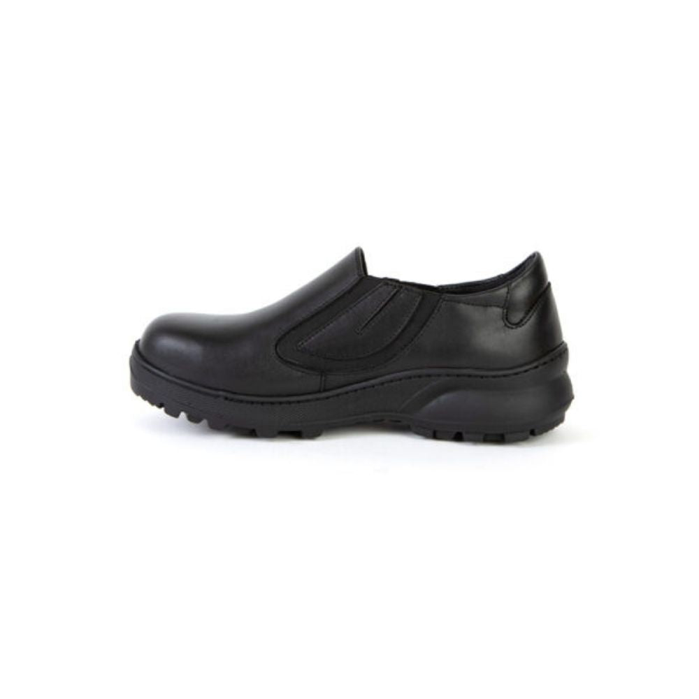 Feather Milan slip-on steel toe shoe features a classic design that is the right combination of lightweight materials, comfort, and a wider steel toe cap - which makes it roomier around the toe area while still protecting your toes and bottom of your foot.
