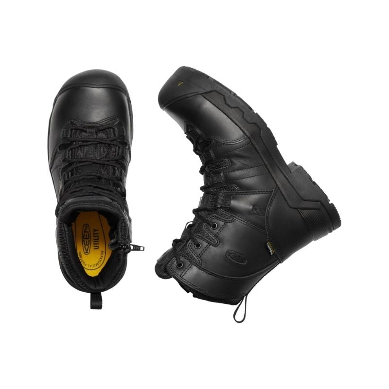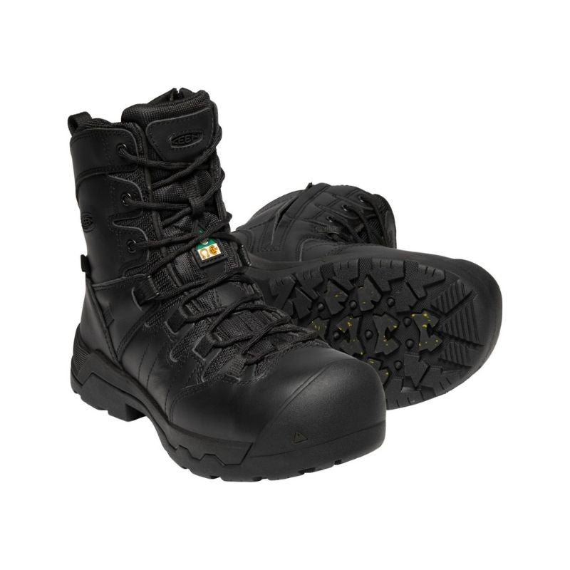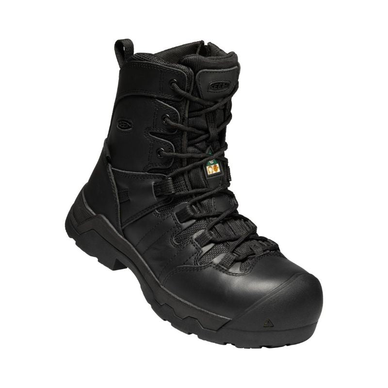 Inspired by a true-hiking supportive fit, the Keen Oshawa+ 8” waterproof, all-black women's composite toe work boot is perfect for any tactical work needed to be done. The side zip offers easy on and off and its carbon-fiber safety toes help maintain the lightweight, non-metallic nature of this great fitting boot.