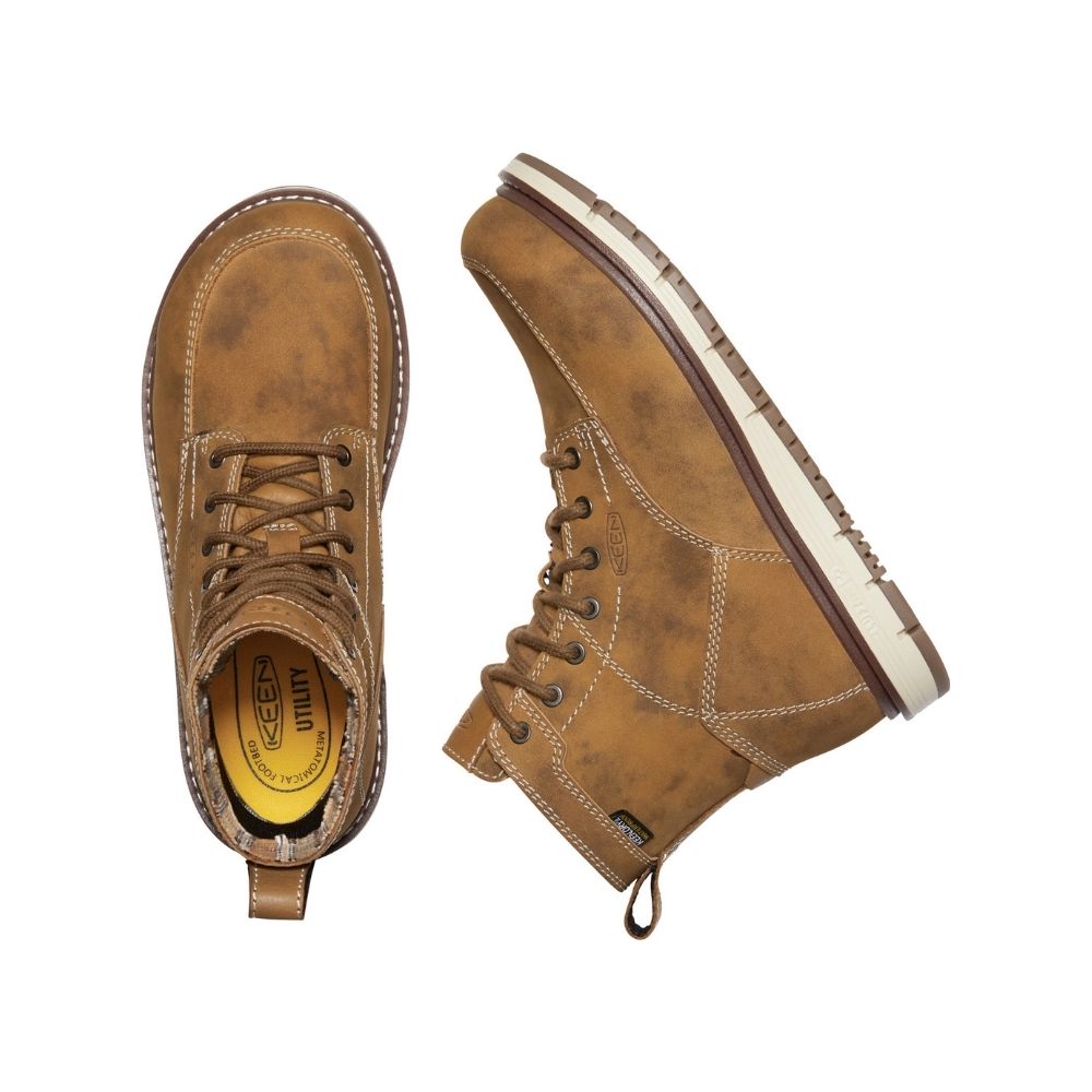 The waterproof, all-leather San Jose women's 6-inch steel toe work boot feels like no other and works hard from clock in to clock out and beyond. Offering a KEEN Luftcell air-infused cushioning midsole, KEEN.DRY waterproof, breathable membrane, lightweight aluminum safety toes, and an EH-rated, slip-resistant outsole, this featherweight work boot packs a punch with quality materials and performance safety features.