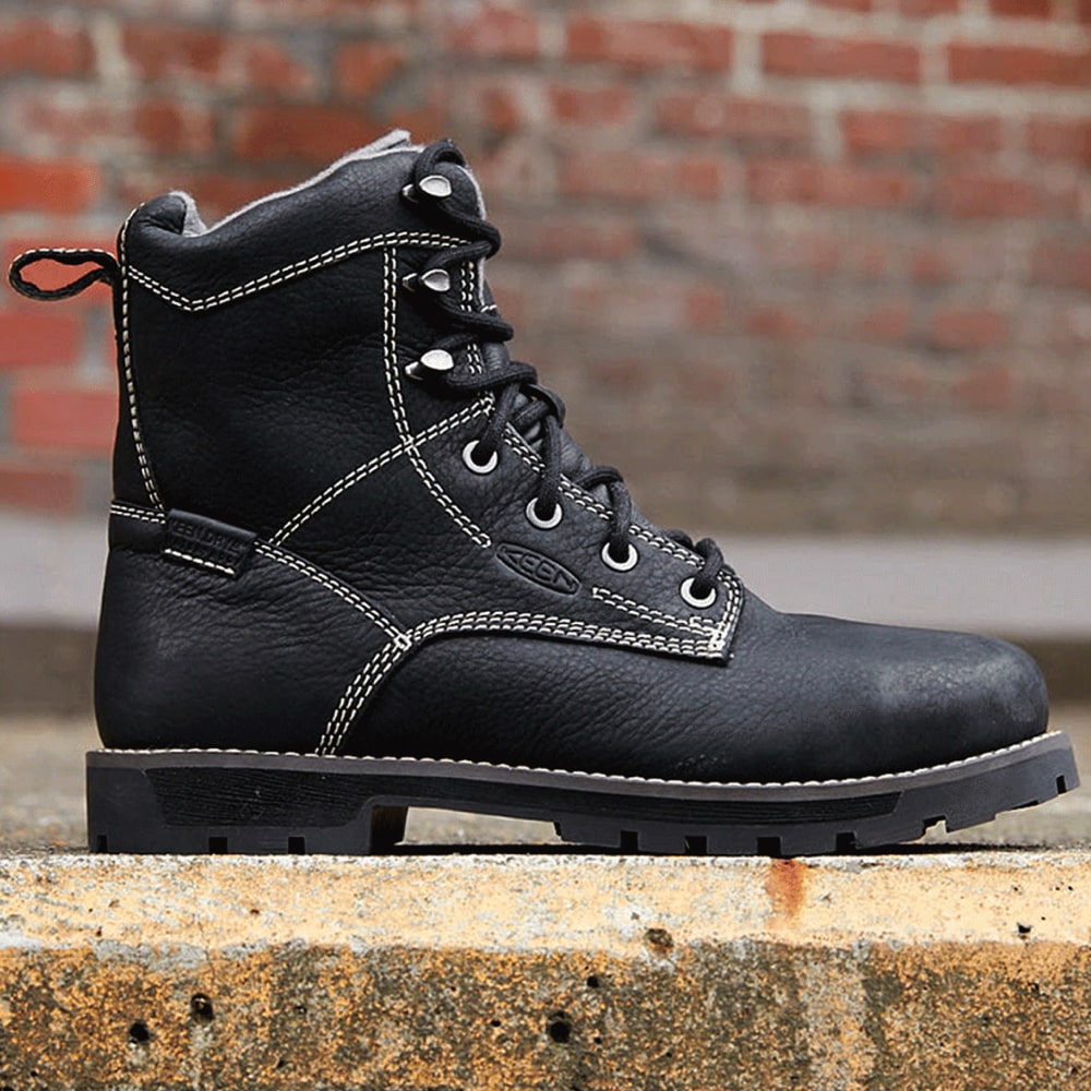 The Keen Seattle women's steel toe boot was designed with KEEN.DRY waterproof breathable membrane with non-metallic, flexible woven-textile puncture-resistant midsole plate.