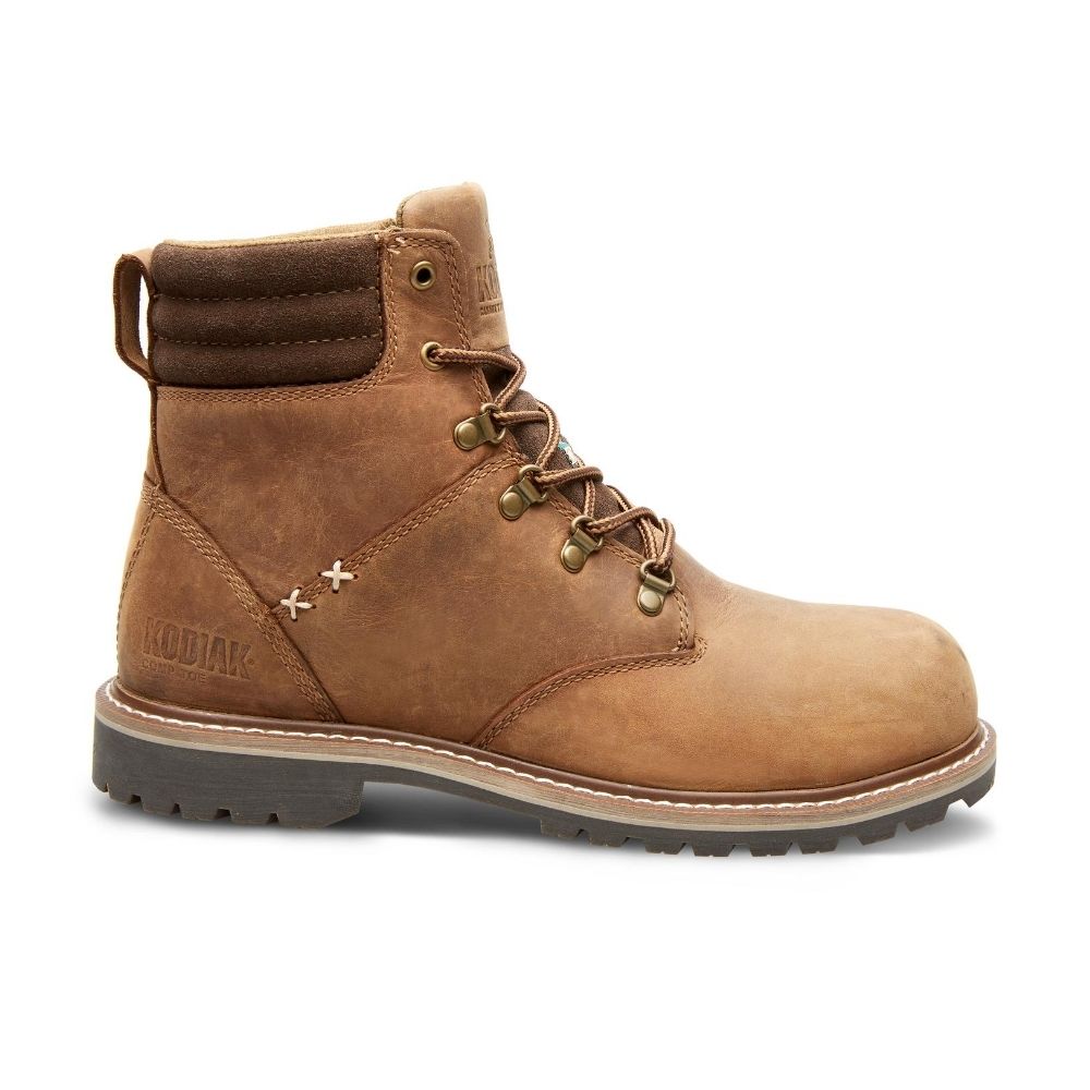 Hit the worksite in style with Kodiak's new Bralorne women's 6-inch composite toe work boots. This classic Kodiak safety boot was designed with bellows leather padded tongue and collar and their Comfortzone® footbed with Ortholite® to give you all-day comfort!