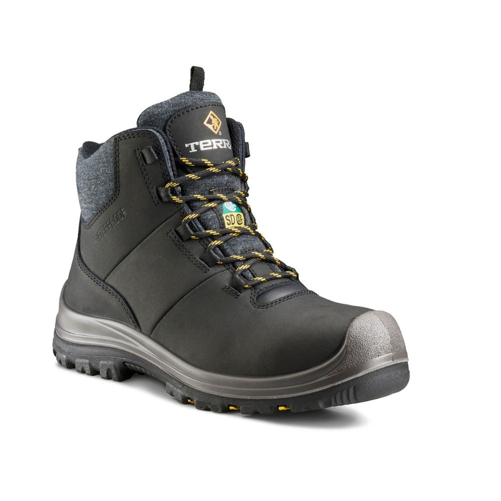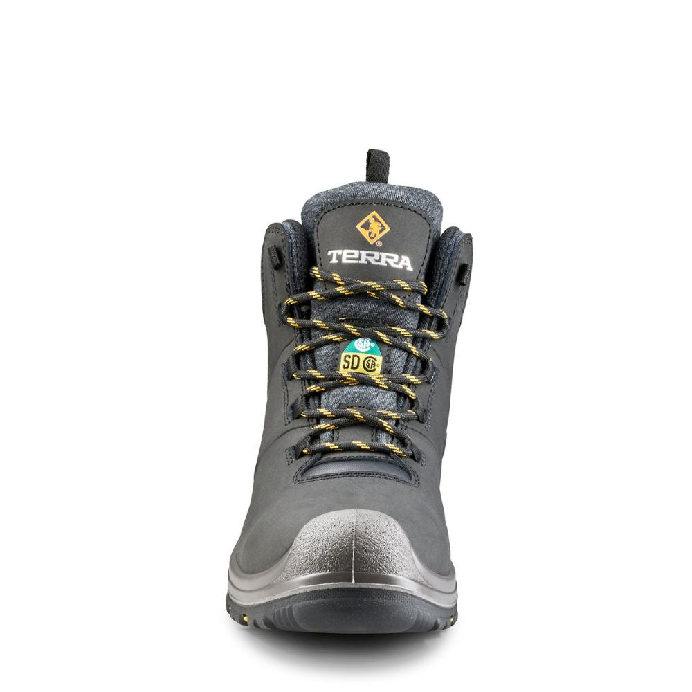 Stay safe and comfortable in the Terra Findlay SD Women's 6" Waterproof Composite Toe Safety Boot. Crafted with a full-grain waterproof nubuck leather upper and a waterproof membrane, these boots also feature CLEANFEET® odour-control treatment and moisture-wicking aero-lining to keep your feet fresh and dry. The slip-resistant rubber outsole, shock-absorbing midsole, and premium insole provide top-notch protection, while the CSA Grade 1 composite toe and plate make these boots 100% metal-free.